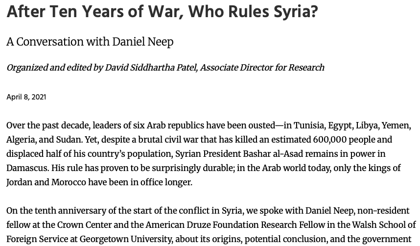 ‘Why hasn’t the Asad Regime Collapsed? Lessons from Syria’s History of Tyranny,’